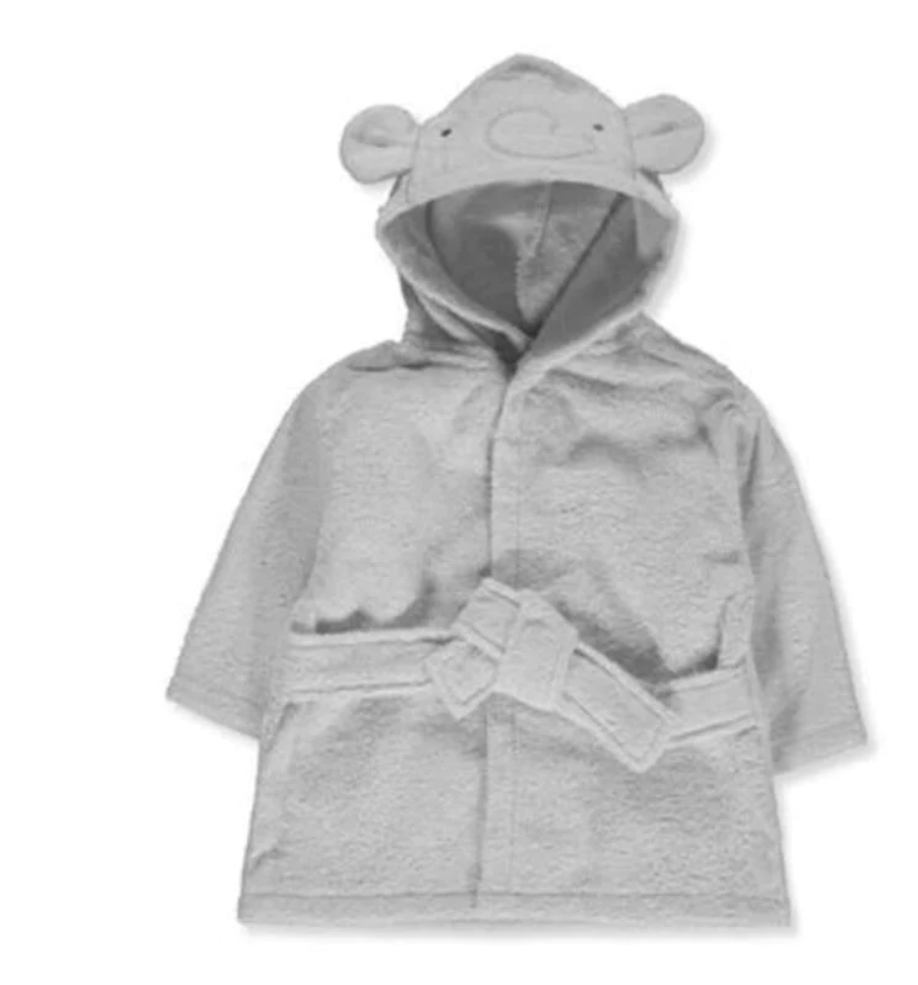 Add some extra fun to baby's bathtime experience with this elephant grey hooded bathrobe from Rene Rofe! Rene Rofe hooded bathrobe Woven construction 70% cotton, 30% polyester Machine wash cold Made in China