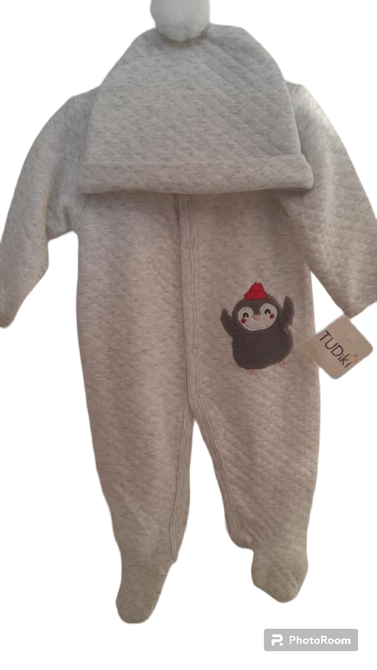 Grey Penguin romper and hat set