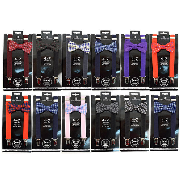 Umo Lorenzo Boy's Solid Color Clip-on Suspender & Matching Bow Tie Set